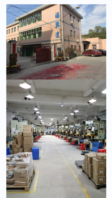 深圳市福兴达五金制品有限公司成立于2011年,位于广东省深圳市龙岗区坪地街道坪东社区锦崇工业园第9栋,占地面积3000平方米。敝司专业从事五金冲压件、五金配件的生产,现有员工80余人,专业工程技术人员超过10人.工厂配备有伺服冲床10-120吨位四十余台。目前检测设备包括材质分析仪、Rosh分析仪、二次元测试仪、压力拉力测试仪、硬度测试仪、拔插力寿命测试仪、盐雾测试仪等一系列检测仪器。工程部模具全为自主开发,配备有中走丝线割机5台、精密打孔机、大水磨机床、精密铣床、钻床、车床等全套设备,能第一时间满足客户急单生产.